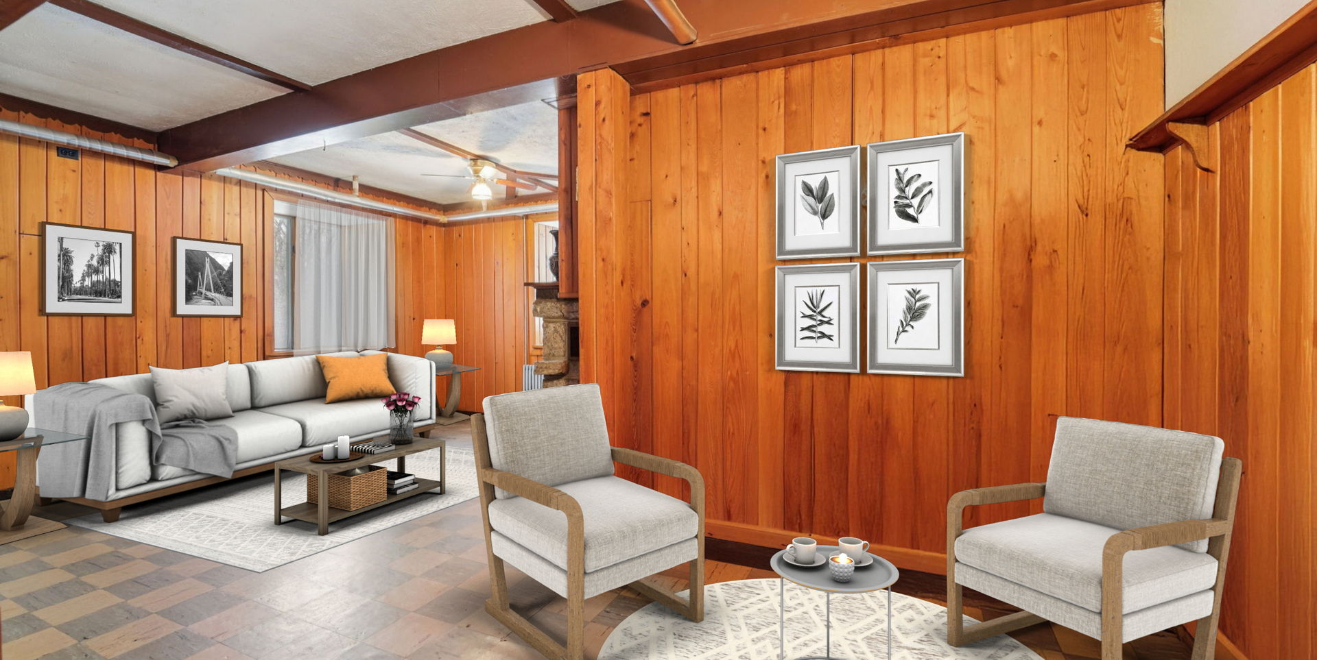 This cozy living room features warm natural light, soft neutral tones, and an inviting open layout. A comfortable seating area centers around a charming fireplace, creating the perfect space for relaxing or entertaining. The atmosphere feels welcoming and effortlessly livable.